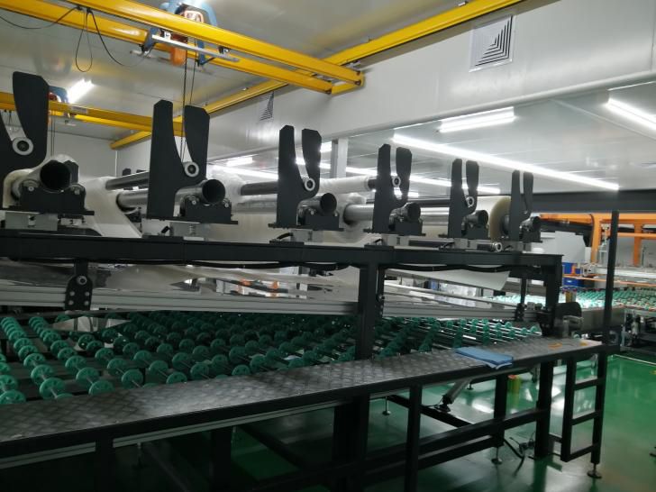 更換采用快捷式結構,托膜輥方便拆卸,換膜方便,省時省力,一人即可完成;收回膜采用電機驅動,變頻調(diào)速依膜筒大小任意調(diào)速;吊膜系統(tǒng)采用采用KBK滑軌式結構,電動鏈式葫蘆提升,該結構使用方便靈活、安全可靠。