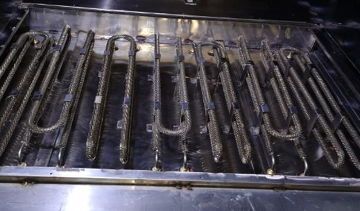 加熱管采用獨特結構的加熱管,在有限的空間內單根功率達到6kW,從而可以保證加熱工藝的要求(升溫調節(jié));加熱管外部接線,減少加熱管損壞率,便于接線。
